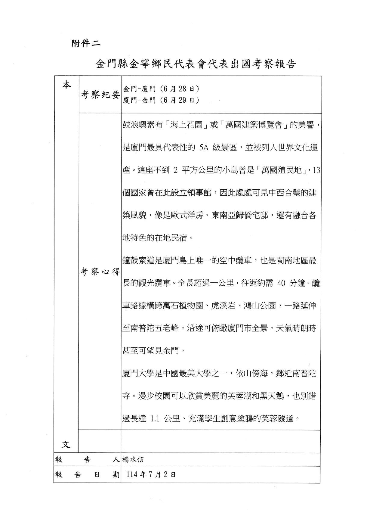 金門縣金寧鄉民代表會約用人員職缺2名案甄選結果