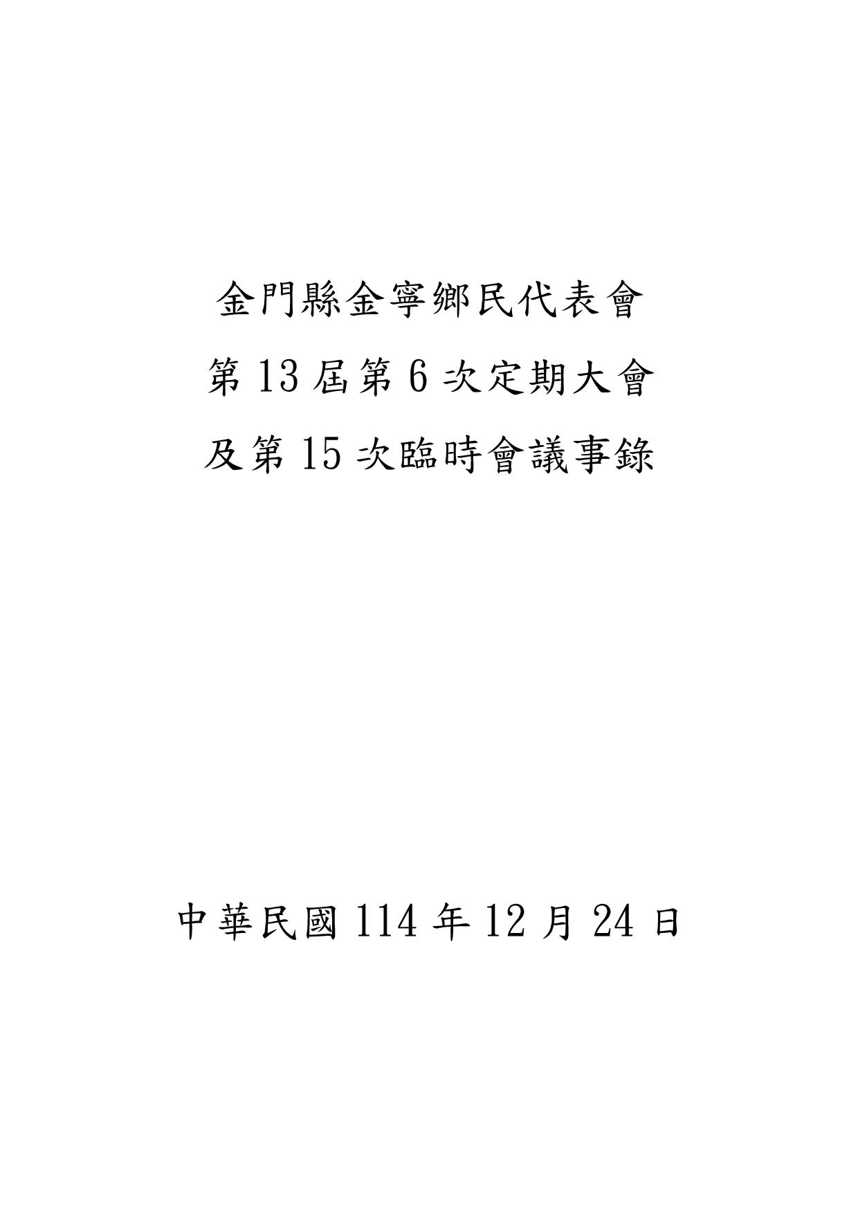 第13屆第6次定期大會暨第15次臨時會(114年11月13日至114年12月3日)
