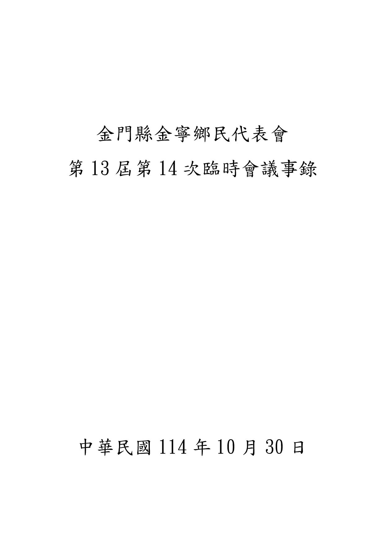 第13屆第14次臨時會(114年10月21日至114年10月23日)