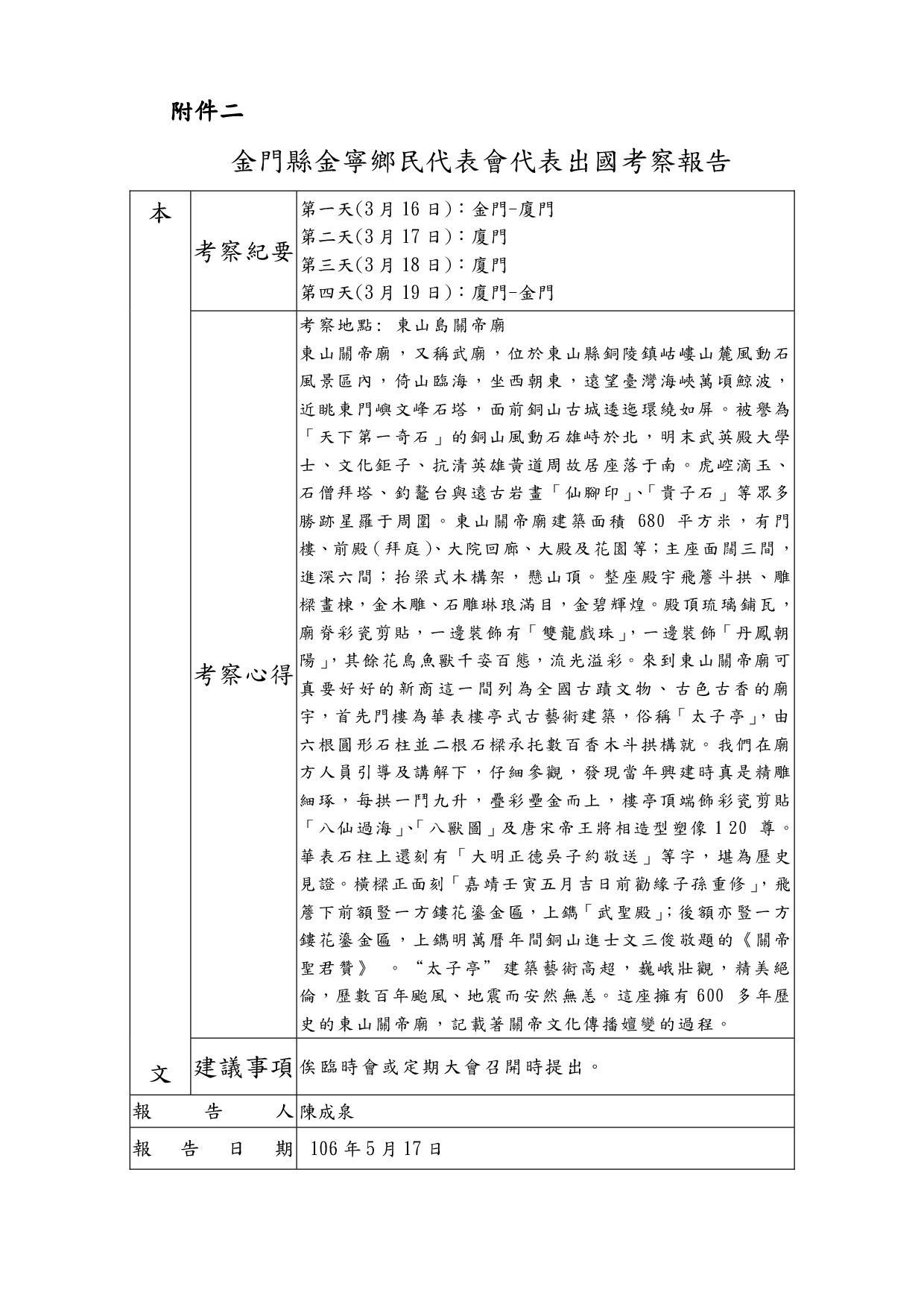 金門縣金寧鄉民代表會約用人員職缺2名案甄選結果