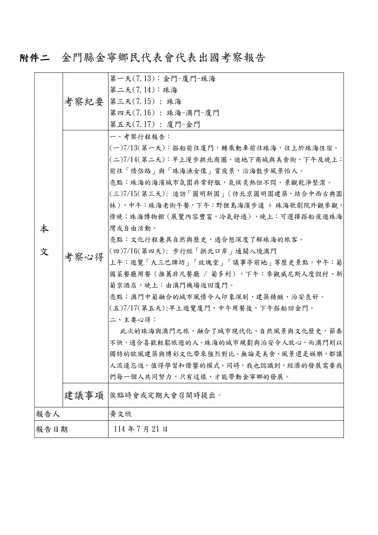 金門縣金寧鄉民代表會約用人員職缺2名案甄選結果